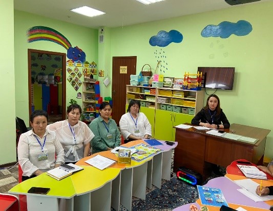 - Тәрбиешілерге әртүрлі ойын түрлерін өткізу әдістемесін, мектеп жасына дейінгі балалардың дағдыларын дамыту бойынша жұмыстың ерекшеліктерін зерделеу бойынша жұмыс жүргізу.