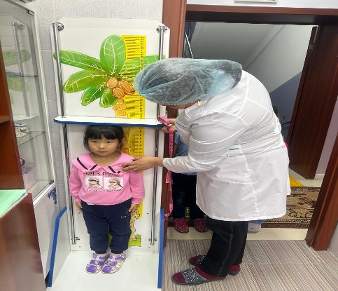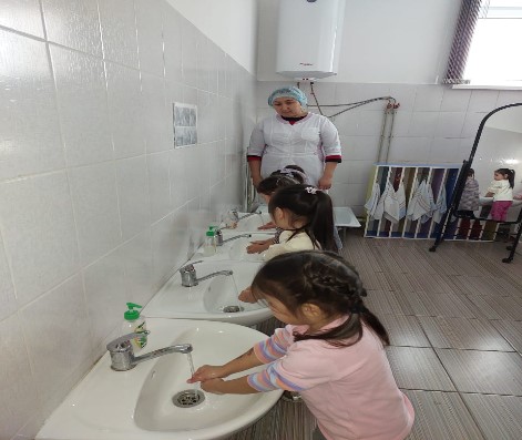 «Балдәурен» балалар бақшасының медбикесі Н.М. Байгабатова балабақшадағы балаларды таңертеңгі сүзбеден өткізіп, топтардағы ауа температурасының жағдайын бақылап, таңғы жаттығулардың өткізілуін қадағалайды. Жалпы топтардағы тазалықтың сақталуын бақылап, балалардың таңғы, түскі, бесін асын дұрыс ұйымдастырылуын қадағалайды. Сонымен қатар, балалардың күнделікті таза ауамен тыныстауы, балаларды жылына екі рет антропометриялық өлшемдерін алу, ата-аналармен үнемі кеңес өткізіп, ЖРВИ, тұмау, қызылша ауруларына байланысты іс шаралар жүргізіліп отырады.